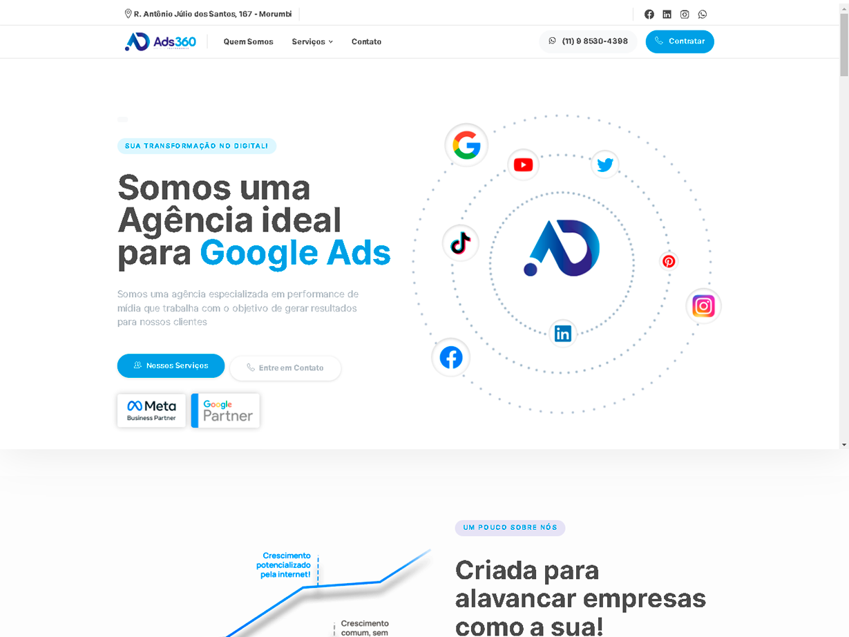 Mas para alcançar um resultado satisfatório, é necessário que o seu site seja bem planejado e elaborado. Esse profissionalismo você encontra na Ads 360 desde o primeiro contato. Desenvolvemos sites exclusivos, apresentando criatividade, conceitos inovadores e um layout alinhado ao perfil e à identidade visual da sua empresa.